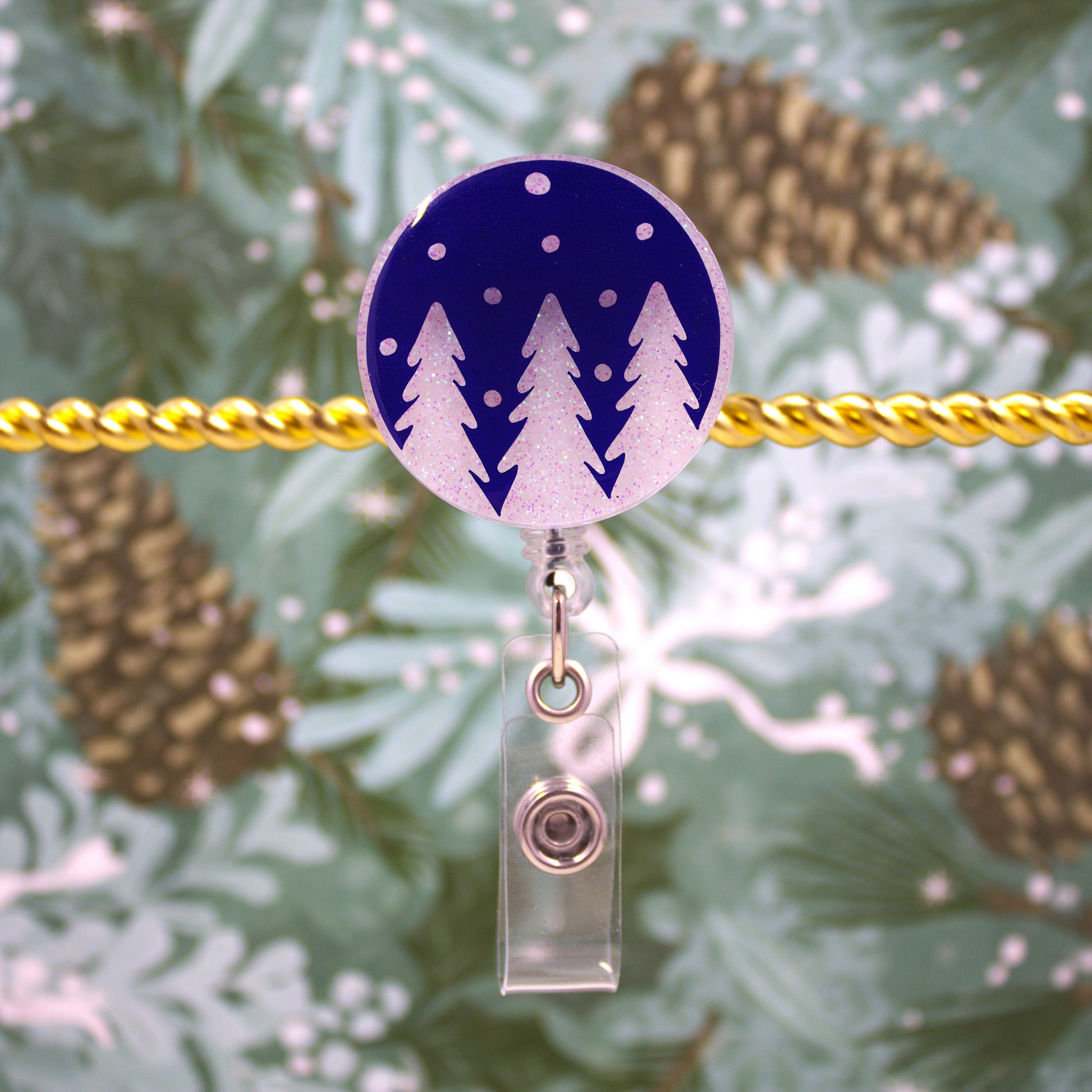 Bring a touch of frosty charm to your badge with this delightful winter tree design.